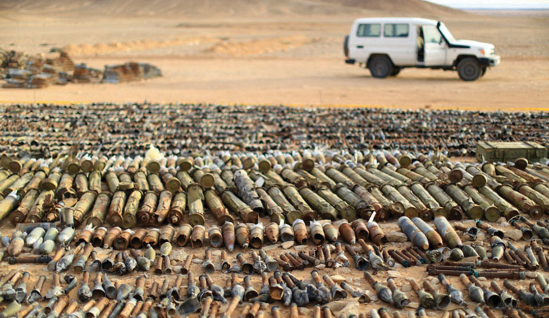Numa demonstração simbolicamente importante, o Departamento de Investigação Criminal da Líbia destruiu 2 toneladas de munições, explosivos e outros vestígios de guerra recolhidos na área de Al-Heera.