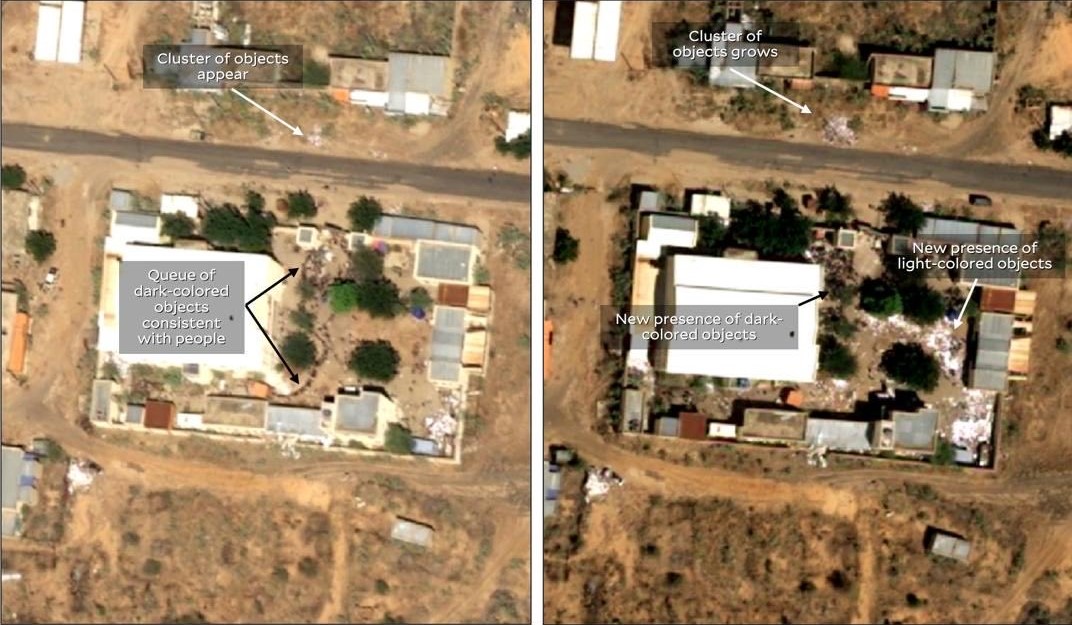 Imagens de satélite tiradas no dia 26 de Outubro parecem confirmar as execuções das RSF nas ruas de El-Fasher, de acordo com um relatório publicado pelo Laboratório de Pesquisa Humanitária de Yale (HRL).